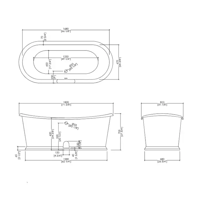 Devon&Devon Regal Ванна чугунная отдельностоящая 182х71х58см, цвет: серебро