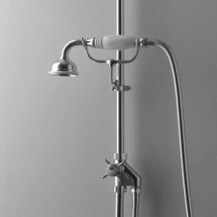 Devon&Devon Ручной душ с переключателем и держателем с белой ручкой, цвет: хром