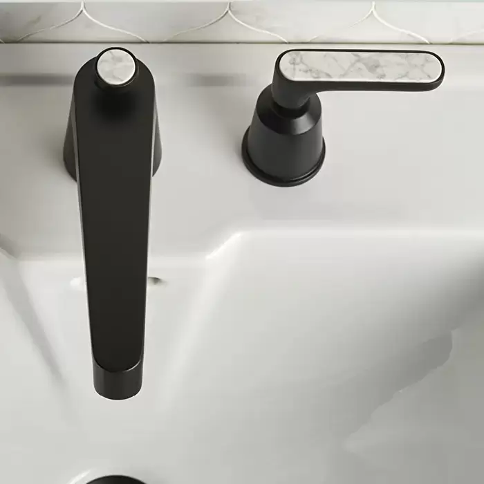 Devon&Devon Twenties Смеситель для раковины, на 3 отв., с донным клапаном, цвет: черный матовый/Bianco Carrara