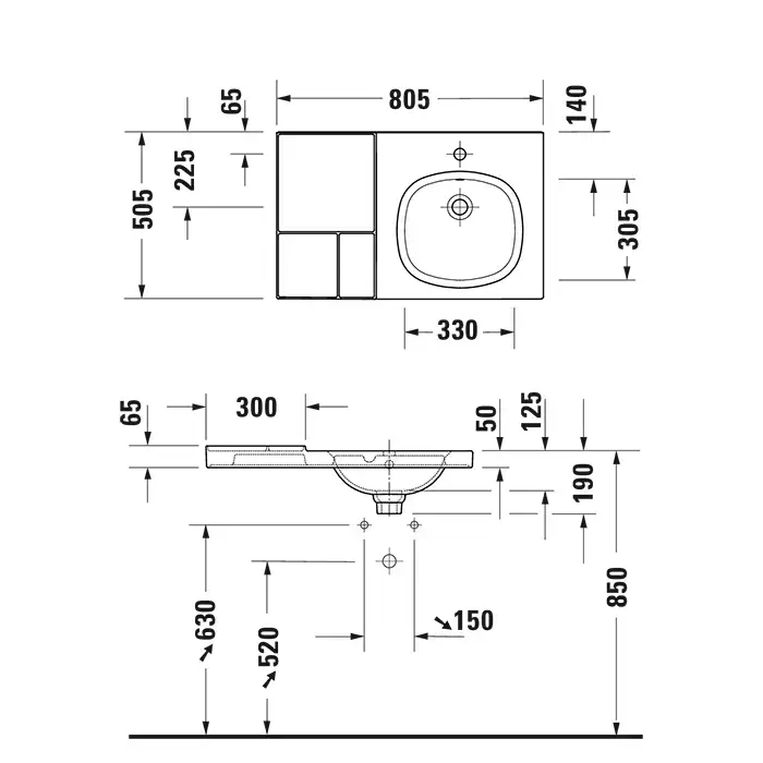 Duravit Aurena Раковина подвесная 80x50см., с 1 отв, dx, HygieneGlaze, цвет: белый глянец