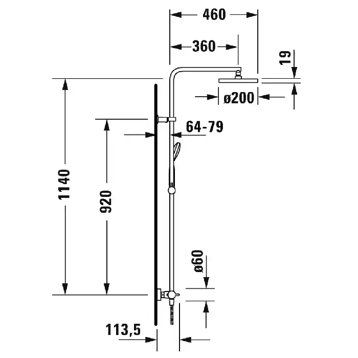 Duravit B.2 Душевая колонна с термостатическим смесителем, верхним душем, штангой и лейкой, цвет: хром