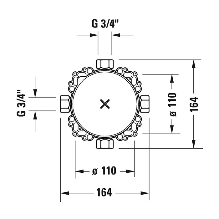 Duravit Bluebox Универсальная скрытая часть смесителя для ванны, душа и термостата 3/4", с запорными клапанами