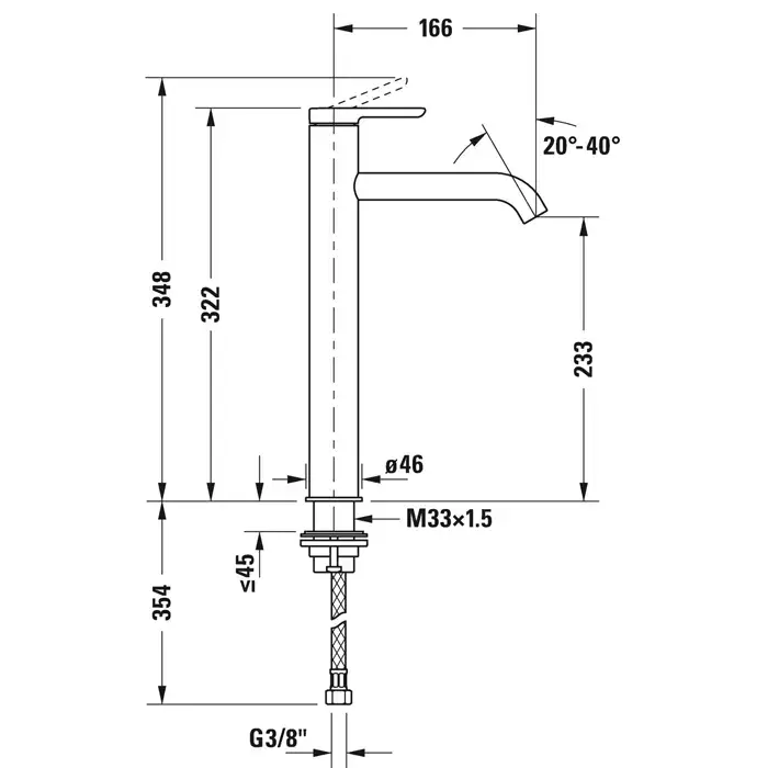 Duravit C.1 Смеситель для раковины, высокий, 1 отв., излив 166мм, цвет: хром