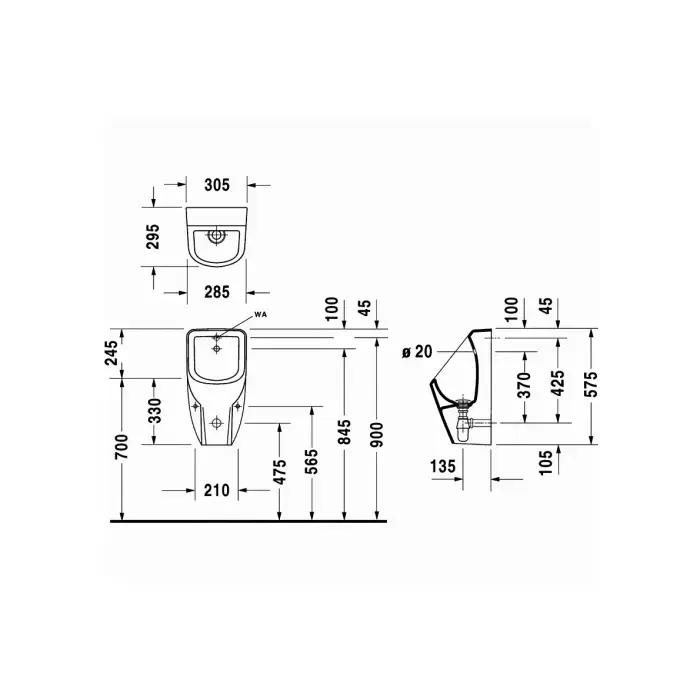 Duravit D-code Писсуар подвесной 30.5x29.5см., без "мушки", подвод воды сзади, цвет: белый