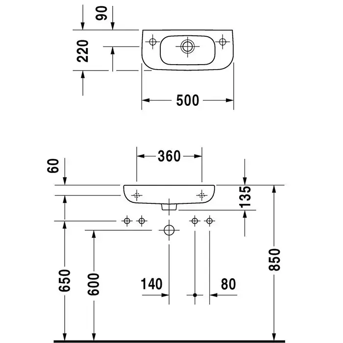 Duravit D-Code Раковина подвесная, 50х22см., с 1 отв., Dx, цвет: белый