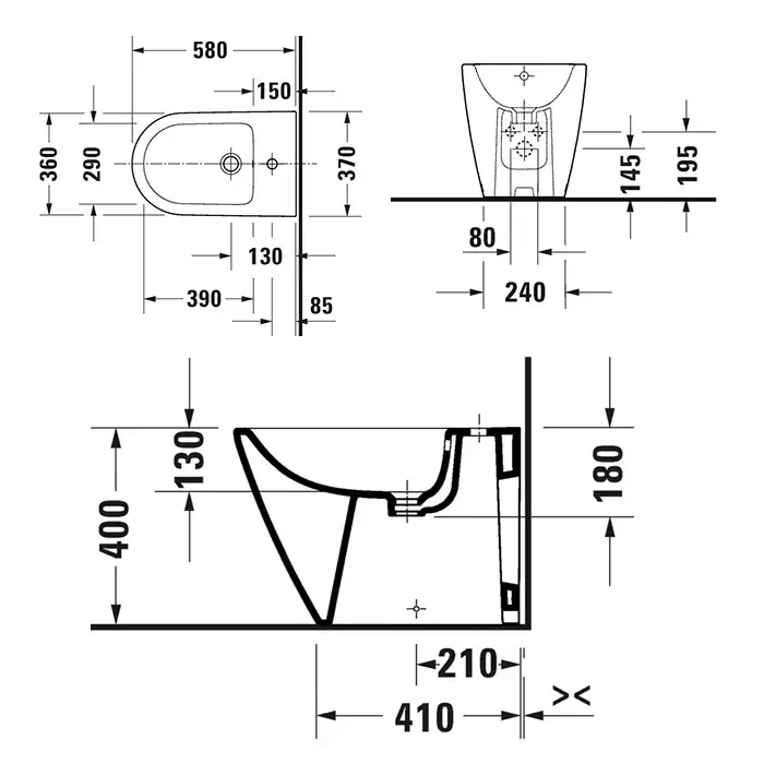 Duravit D-Neo Биде напольное 37x58х40 см, с переливом, с 1 отв., WonderGliss, цвет: белый