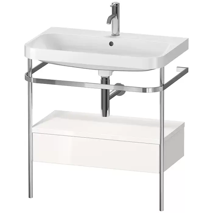 Duravit Happy D.2 Plus Консоль напольная с умывальником 77.5х49х85см, с 1 отв под смесит, 1 ящик, 1 полотенцедержатель,выпуск и сифон в комплекте, цвет: белый глянцевый/хром