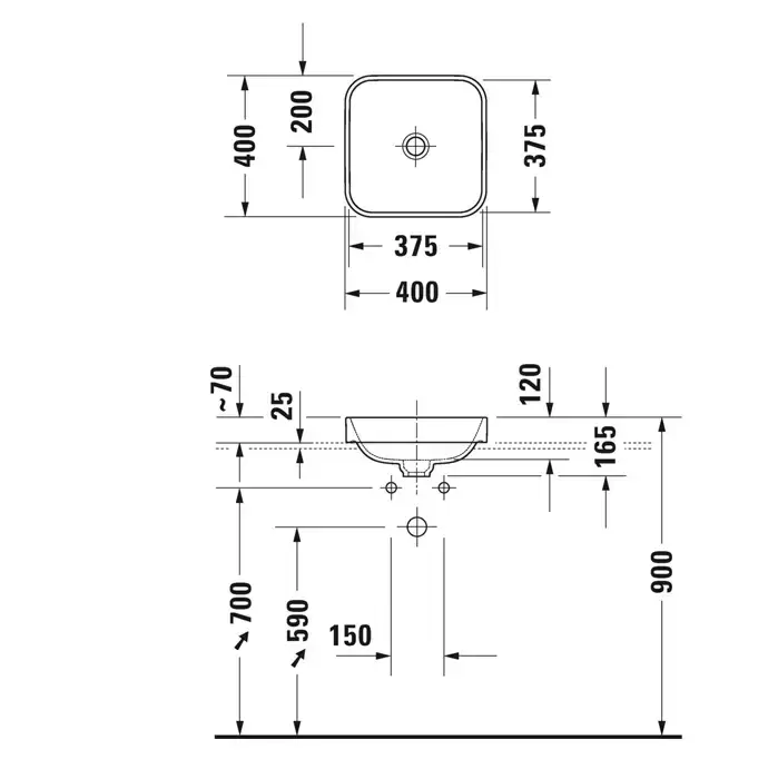 Duravit Happy D.2 Plus Раковина 40х40см, без отв., накладная, квадратная, цвет: белый