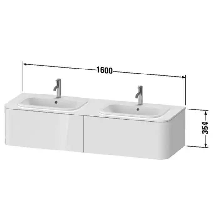 Duravit Happy D.2 Plus Тумба подвесная 160x55x35.4см, с 2 раковинами и 2 ящиками , цвет: stone grey satin matt