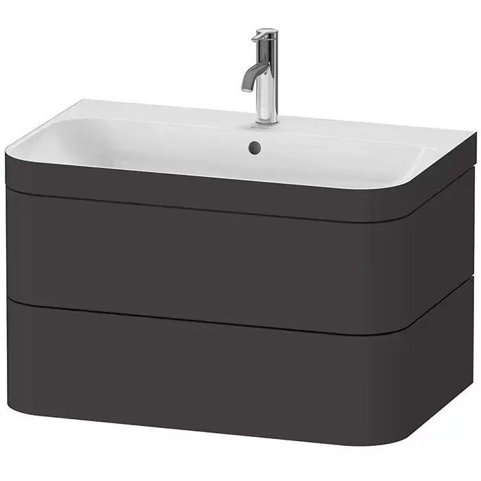 Duravit Happy D.2 Plus Тумба подвесная c-bonded с умывальником 77.5х49х46.8см, с 1 отв под смес, 2 ящика, выпуск и сифон в комплекте, цвет: Графит суперматовый, умывальник, цвет: белый глянцевый