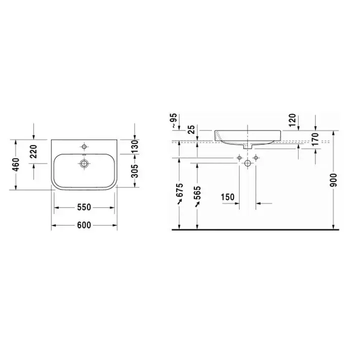 Duravit Happy D.2 Раковина 65х46см., встраиваемая сверху, 1 отв., со слив-переливом, с креплением, цвет: белый