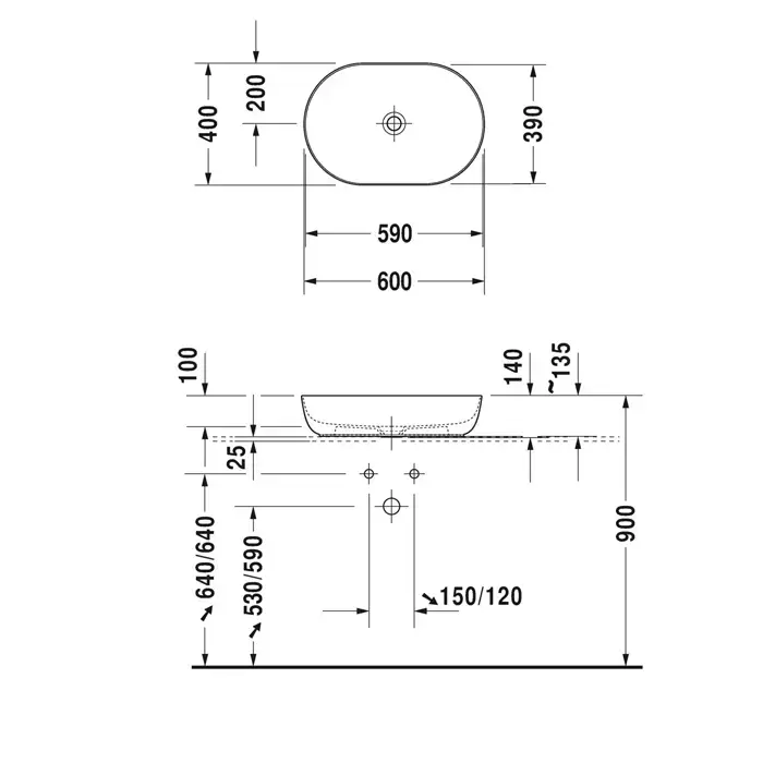 Duravit Luv Раковина накладная 60х40см., без отв., без перелива, цвет: белый