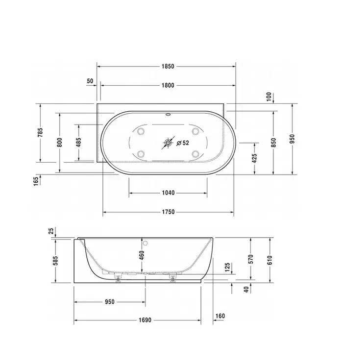 Duravit Luv Ванна пристенная 185x95см, из минерального литья, угол слева, с панелью и ножками, цвет: белый