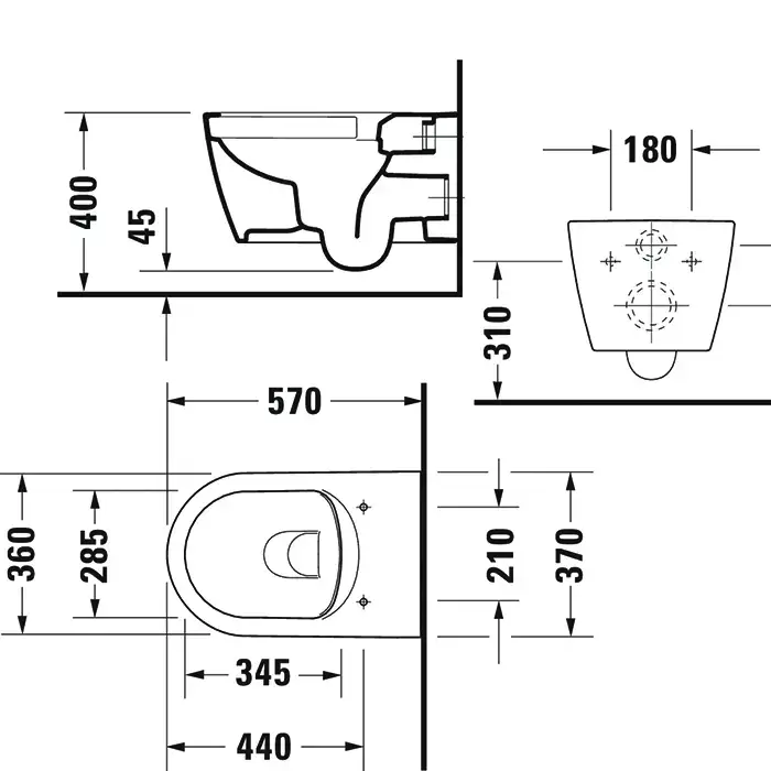 Duravit Me by Starck Унитаз подвесной Rimless 57х37см., с креплениями, цвет: белый