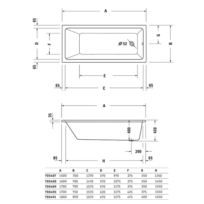 Duravit No.1 Ванна 180х80см., встраиваемая, акриловая, цвет: белый