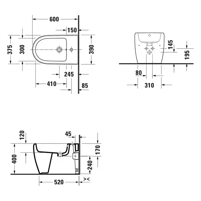 Duravit Qatego Биде напольное 39х60х40см., 1 отв., Weiß Hochglanz, цвет: белый