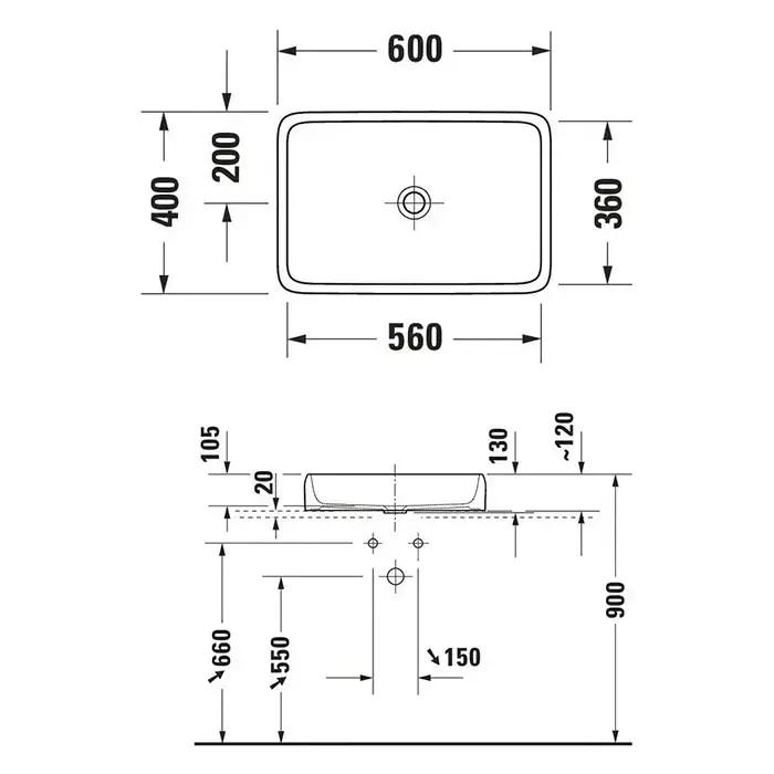 Duravit Qatego Раковина 56х40х13см., накладная, без отв., цвет: белый