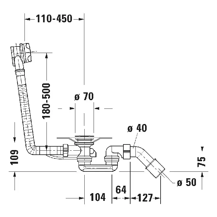 Duravit Слив и перелив, диаметр выпуска 52 мм, цвет: хром