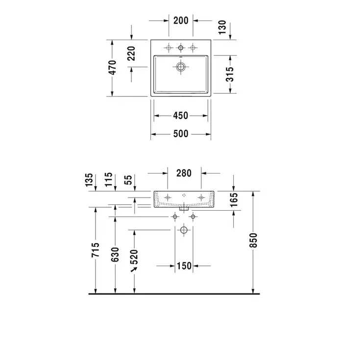 Duravit Vero Air Раковина 50х47см., подвесная, без отв., с переливом, цвет: белый