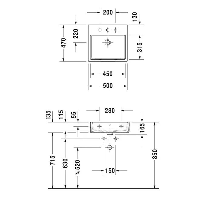 Duravit Vero Air Раковина 50х47см., подвесная, без перелива, с 3 отв. цвет: белый