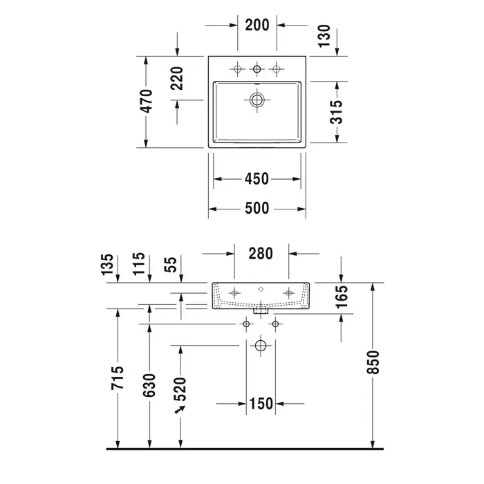 Duravit Vero Air Раковина 50х47см., подвесная, c 3 отв., без перелива, цвет: белый