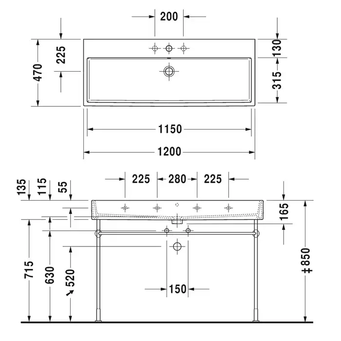 Duravit Vero Air Раковина накладная 120х47см, с 3 отв., без перелива, цвет: белый
