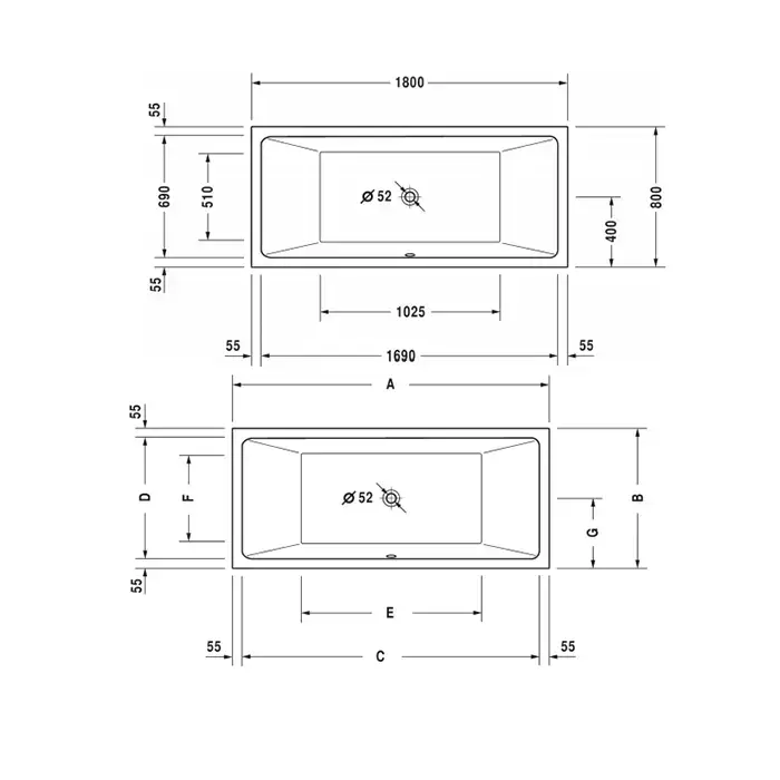 Duravit Vero Air Ванна 180x80см, встраиваемая, с 2 наклонами для спины, цвет: белый