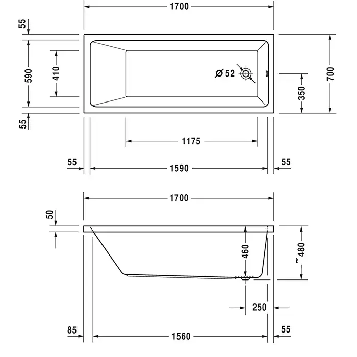 Duravit Vero Air Ванна акриловая 170x70cм, встраиваемая, цвет: белый
