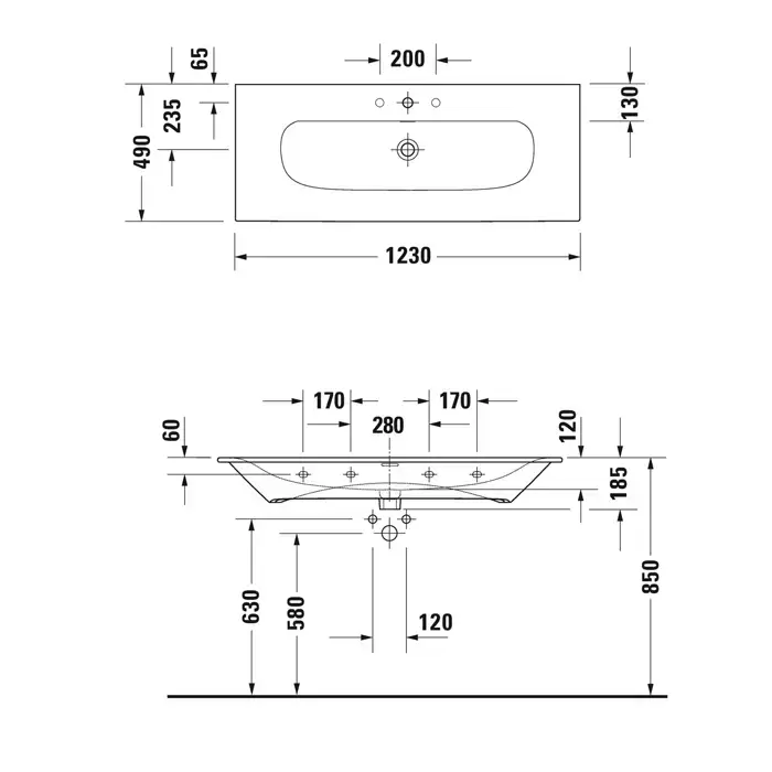 Duravit Viu Раковина 123х49 см, 1 отв., цвет: белый