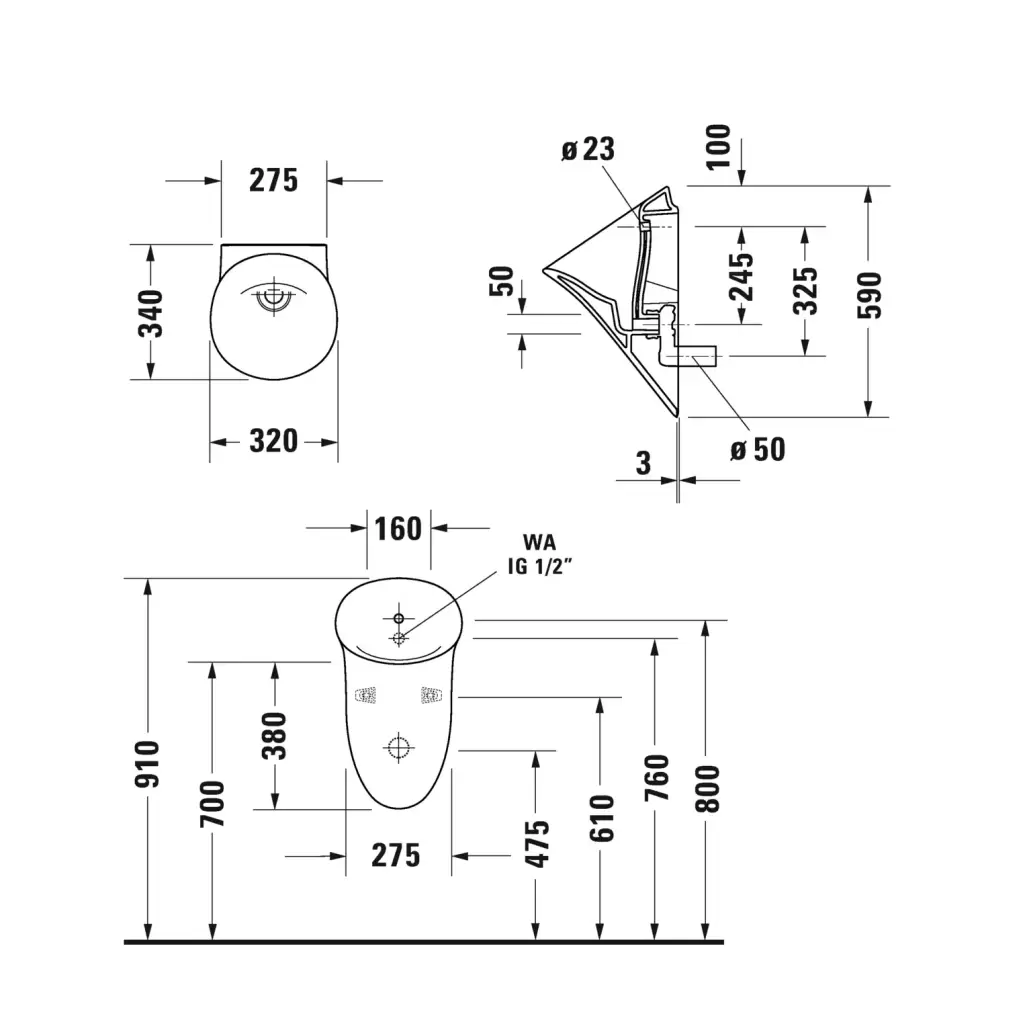 Duravit White Tulip Писсуар 32х34см., без смывного края, с вытяжкой, подача воды сзади, сток горизонтальный, с "мушкой", цвет: белый