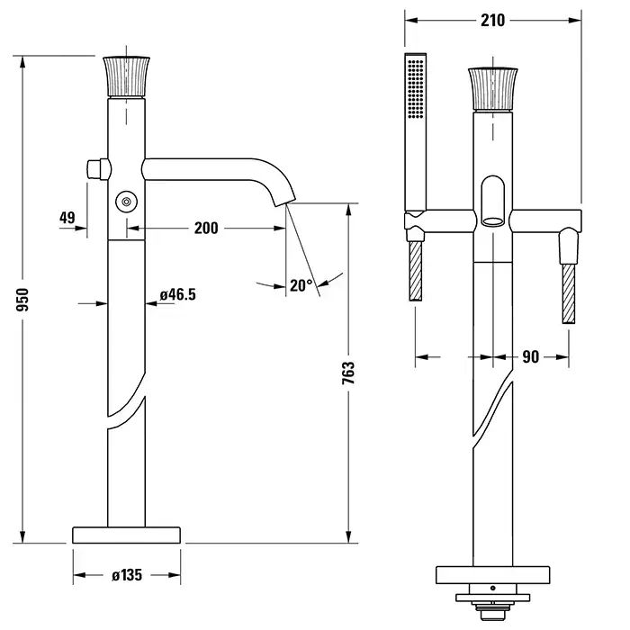Duravit White Tulip Смеситель для ванны, напольный, с ручным душем, цвет: хром