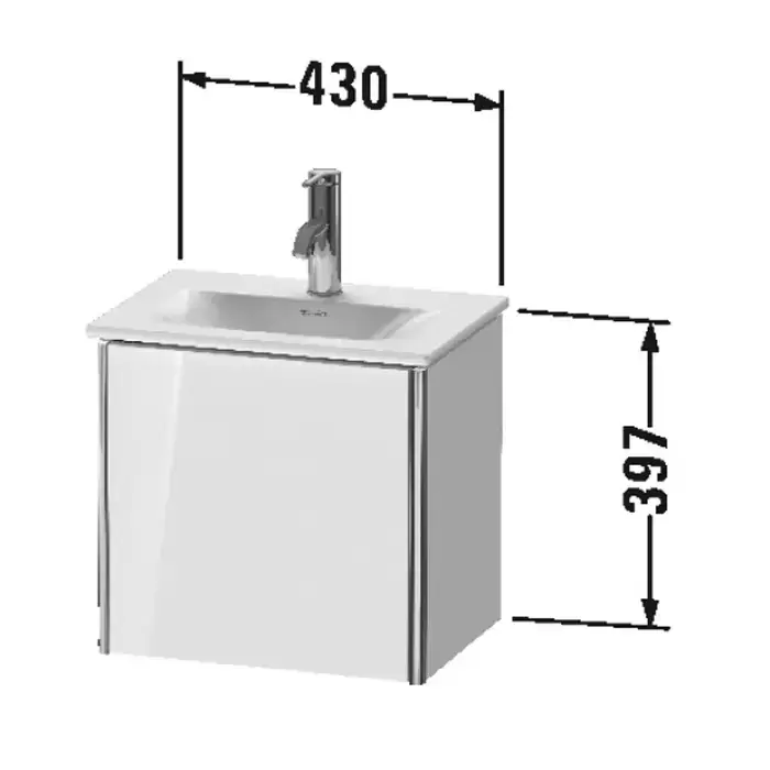 Duravit XSquare База подвесная 43x30.8x39.7см с раковиной, 1 дверца, петли справа, цвет: глянцевый белый