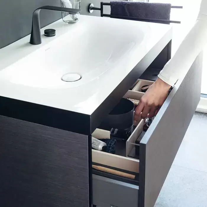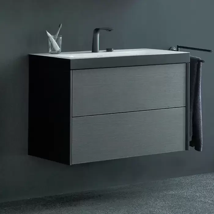 Duravit XViu Тумба подвесная 80x48x50.3см, 2 ящика, с раковиной без перелива, с 2 отв под смес, цвет: dark brushed oak/чёрный матовый