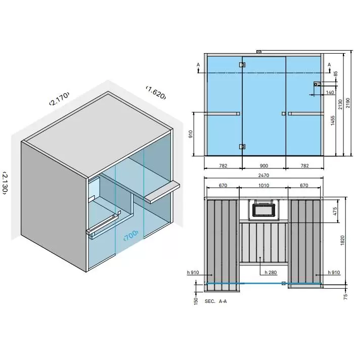 Effegibi Air 60 Био-Сауна 217x162x213см, угловая SX, цвет: осина натуральная