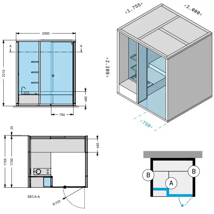 Effegibi BodyLove H Хаммам 200x176x220см, пристенная, цвет: без отделки