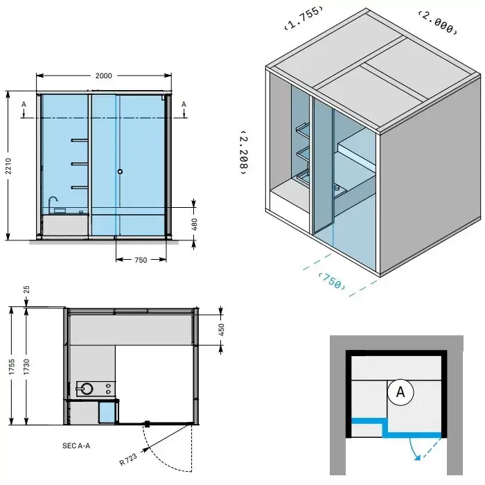 Effegibi BodyLove H Хаммам 200x176x220см, в нишу, цвет: керамогранит Champagne