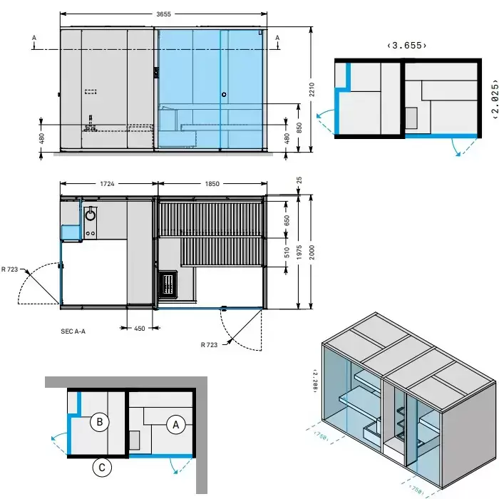 Effegibi BodyLove SH Side Сауна&Хаммам 365x202x220см, угловая DX, цвет: термообработанная древесина/керамогранит Champagne