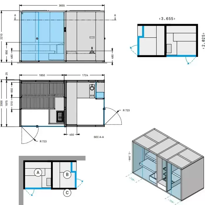 Effegibi BodyLove SH Side Сауна&Хаммам 365x202x220см, угловая SX, цвет: термообработанная древесина