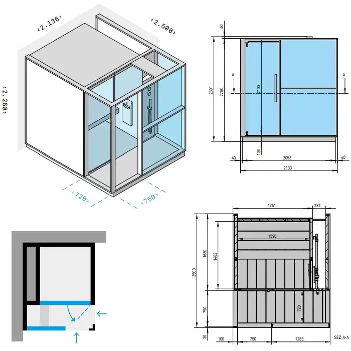 Effegibi Logica H Хаммам с душевой зоной 214x250x226см, угловая SX, цвет: Soft Sand
