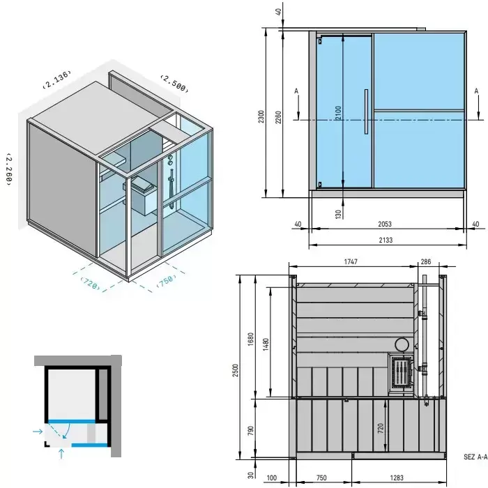 Effegibi Logica S Сауна с душем 214x250x226см, угловая DX, цвет: Soft Sand