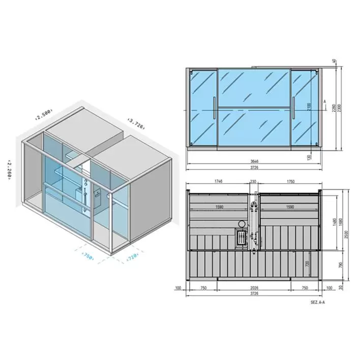 Effegibi Logica Сауна с хаммам и душем 373x250x226см, пристенная, цвет: Soft Sand