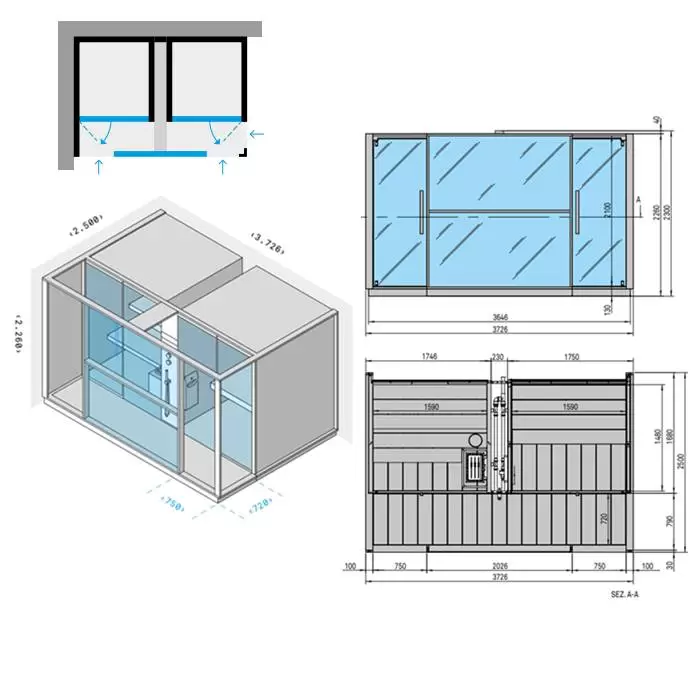 Effegibi Logica Сауна с хаммам и душем 373x250x226см, угловая SX, цвет: Soft Sand