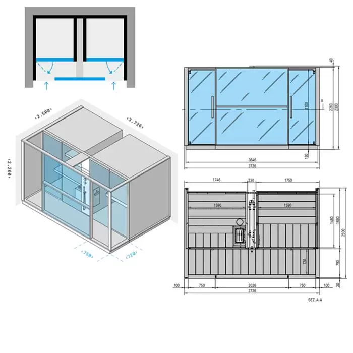 Effegibi Logica Сауна с хаммам и душем 373x250x226см, в нишу, цвет: Soft Sand