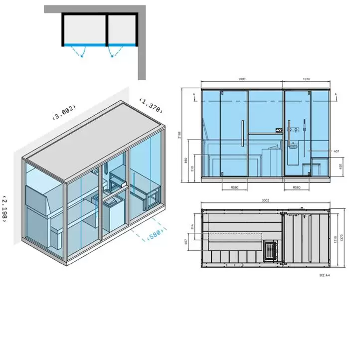 Effegibi Mid Сауна с хаммам и душем 300x137x220см, угловая DX, цвет: Soft Sand
