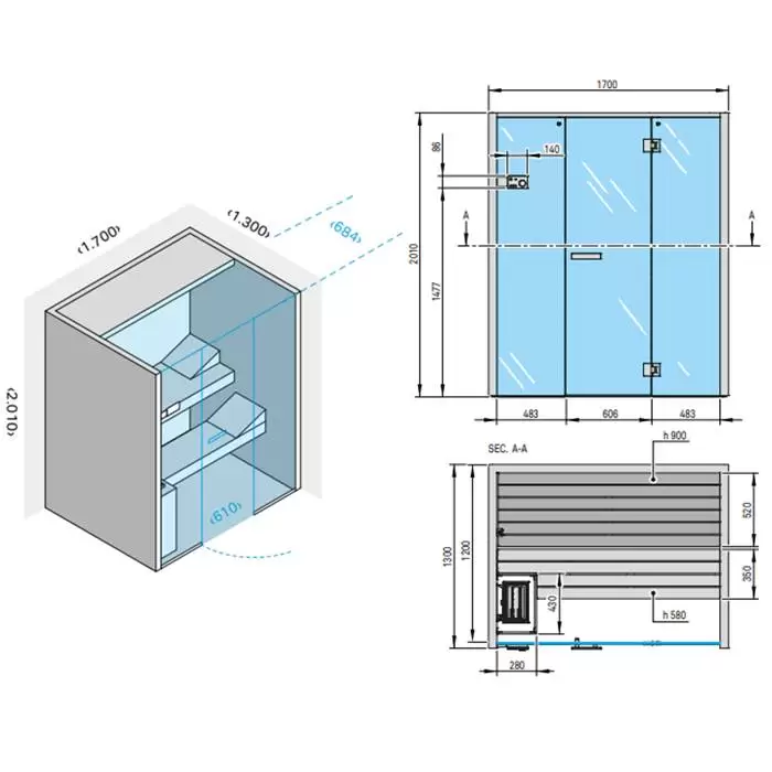 Effegibi Sky 40 Сауна 170x130x201см, пристенная, цвет: канадский хемлок