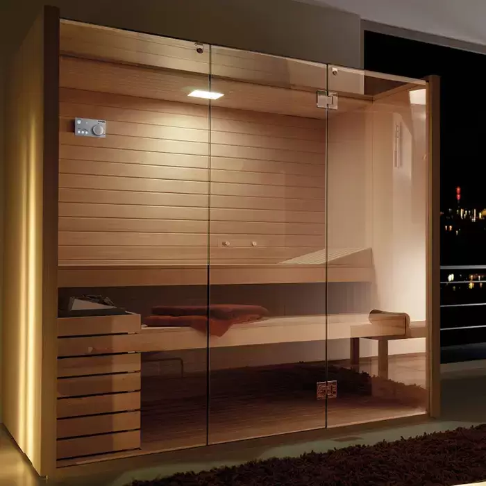 Effegibi Sky Сауна 230x200х211см, пристенная, цвет: осина термообработанная