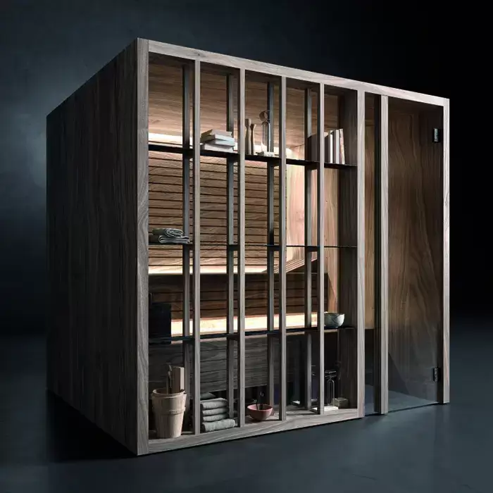 Effegibi Yoku S Shelf Био-Сауна 174x170х214см, угловая DX, цвет: осина термообработанная