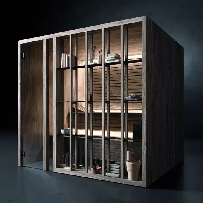 Effegibi Yoku S Shelf Сауна 174x170х214см, угловая SX, цвет: термообработанная древесина