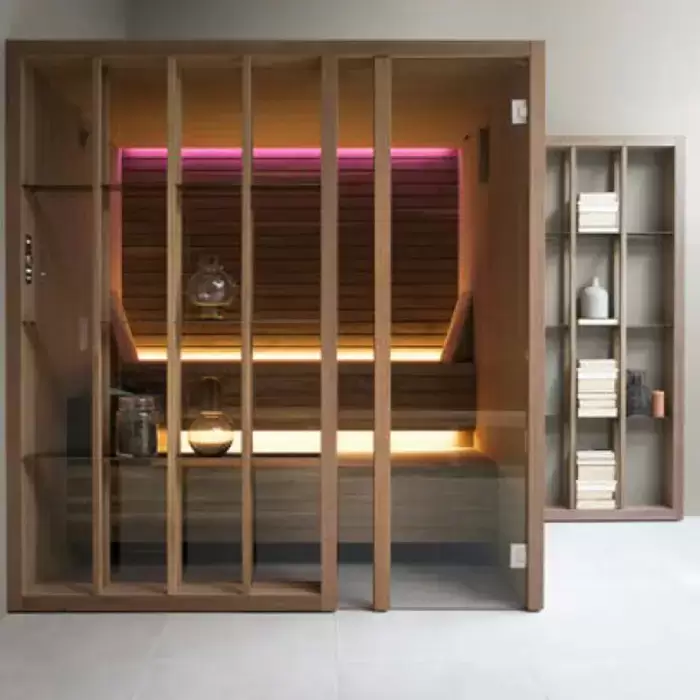 Effegibi Yoku S Shelf Сауна 202x180х214см, угловая SX, цвет: термообработанная древесина