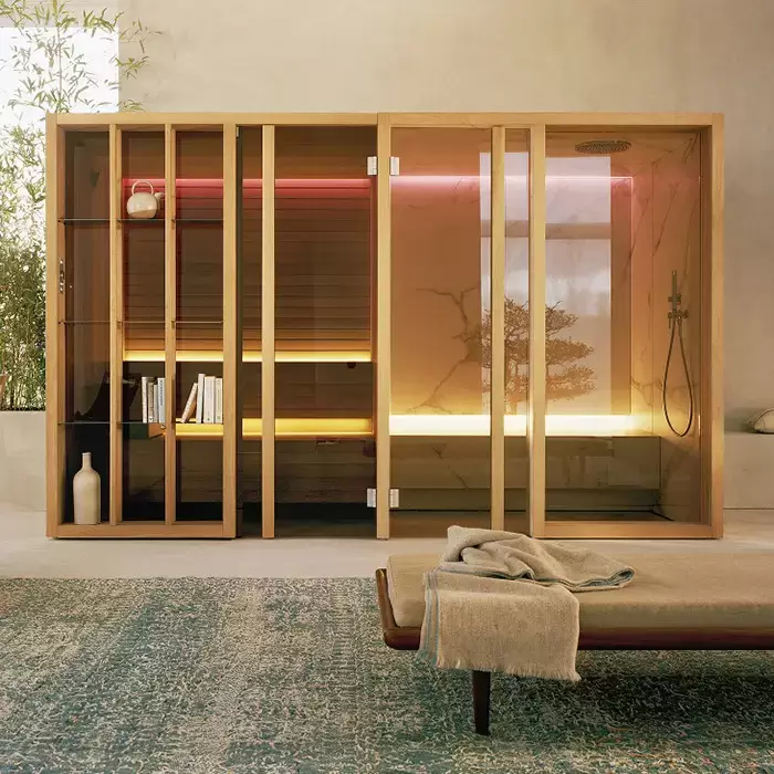 Effegibi Yoku SH Glass Сауна&Хаммам 342x170х214см, угловая Dx, цвет: чёрный орех/Fior di Bosco Tortora